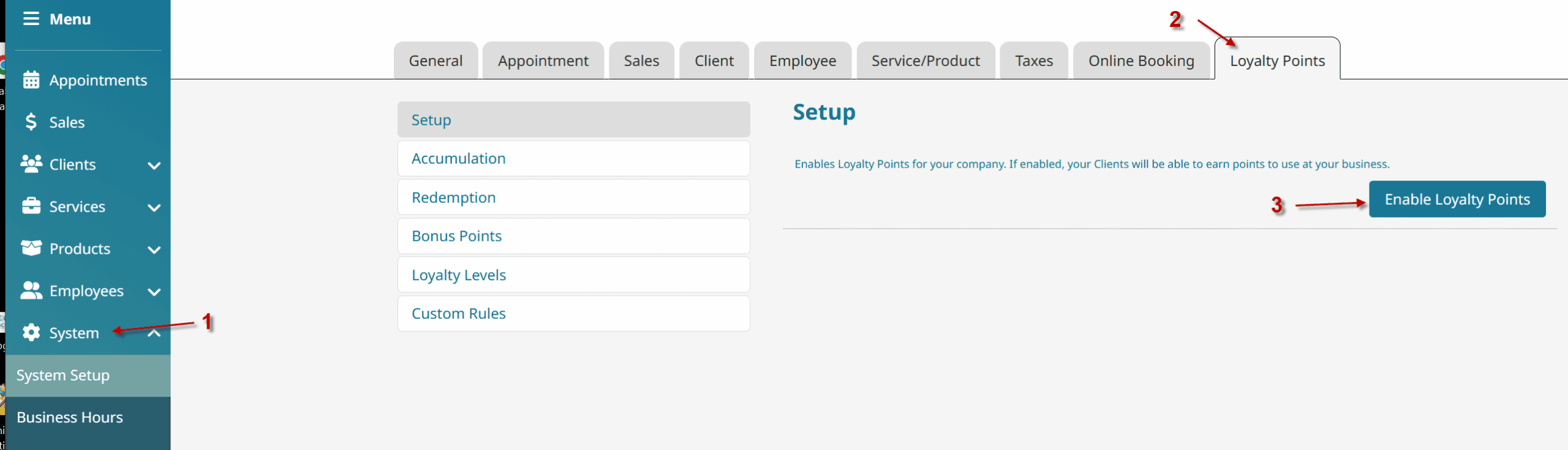 - Under the Setup subsection, click the Enable Loyalty Points button.